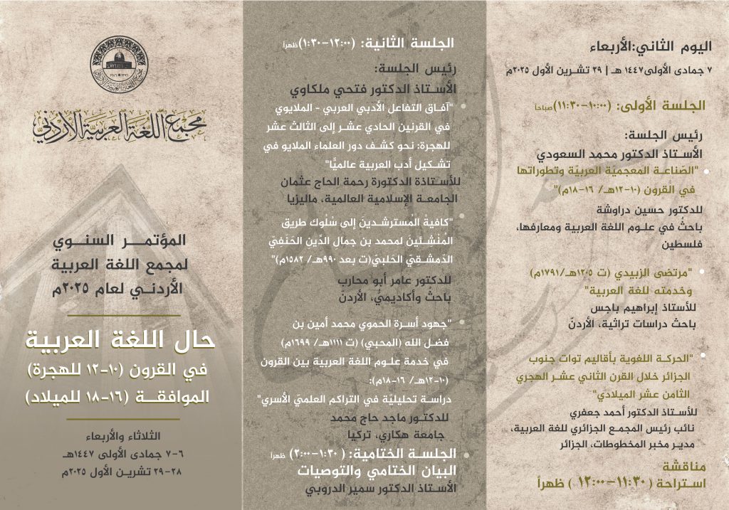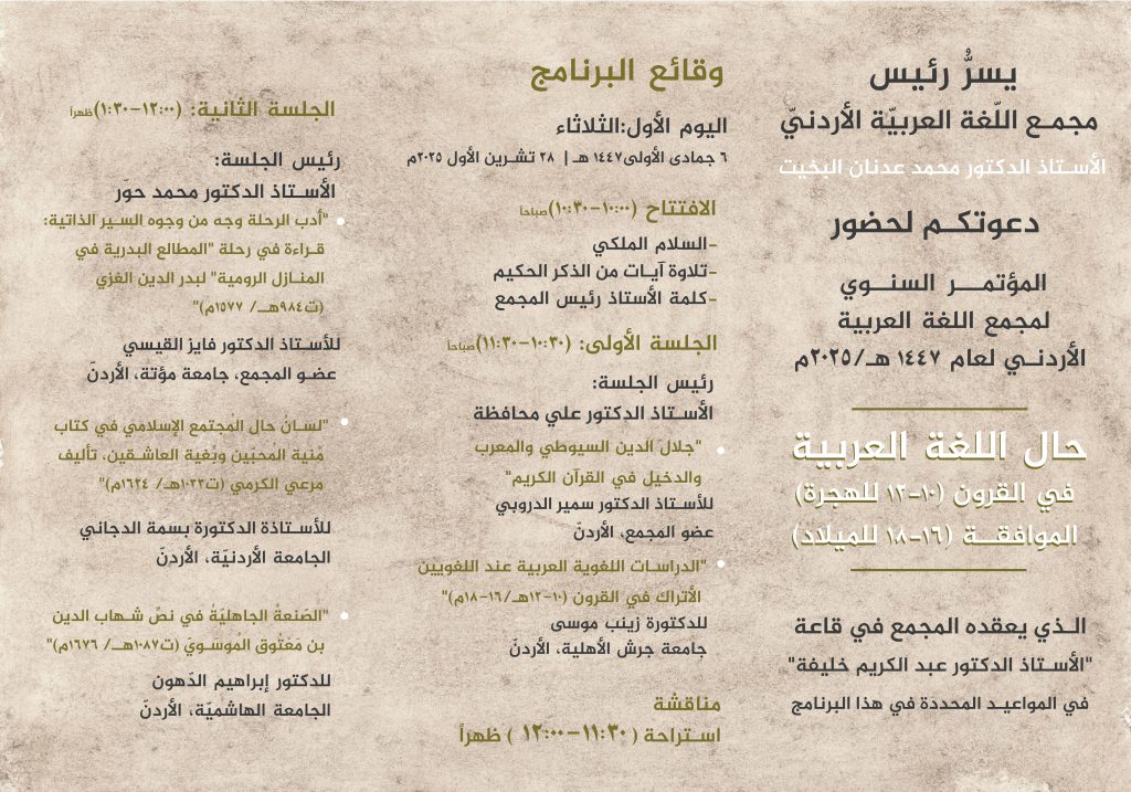 دعوة لحضور المؤتمر السنوي لعام ٢٠٢٥ بعنوان: حال اللغة العربية في القرون (١٠-١٢ للهجرة) الموافقة (١٦-١٨ للميلاد)