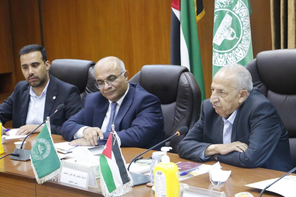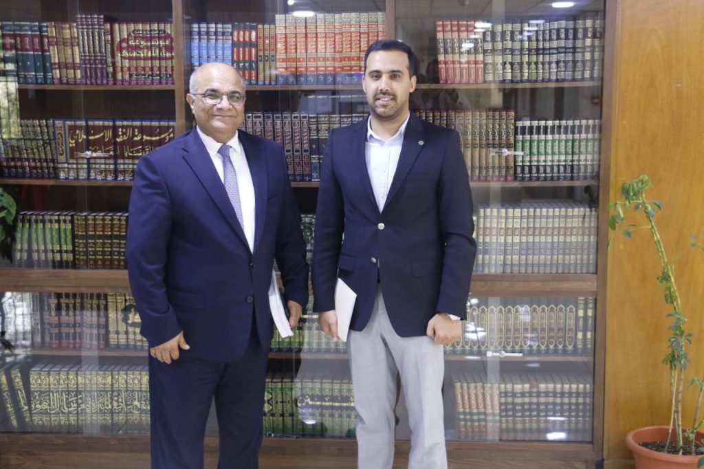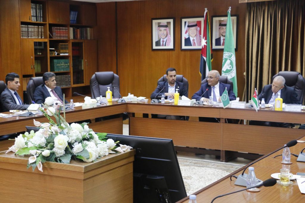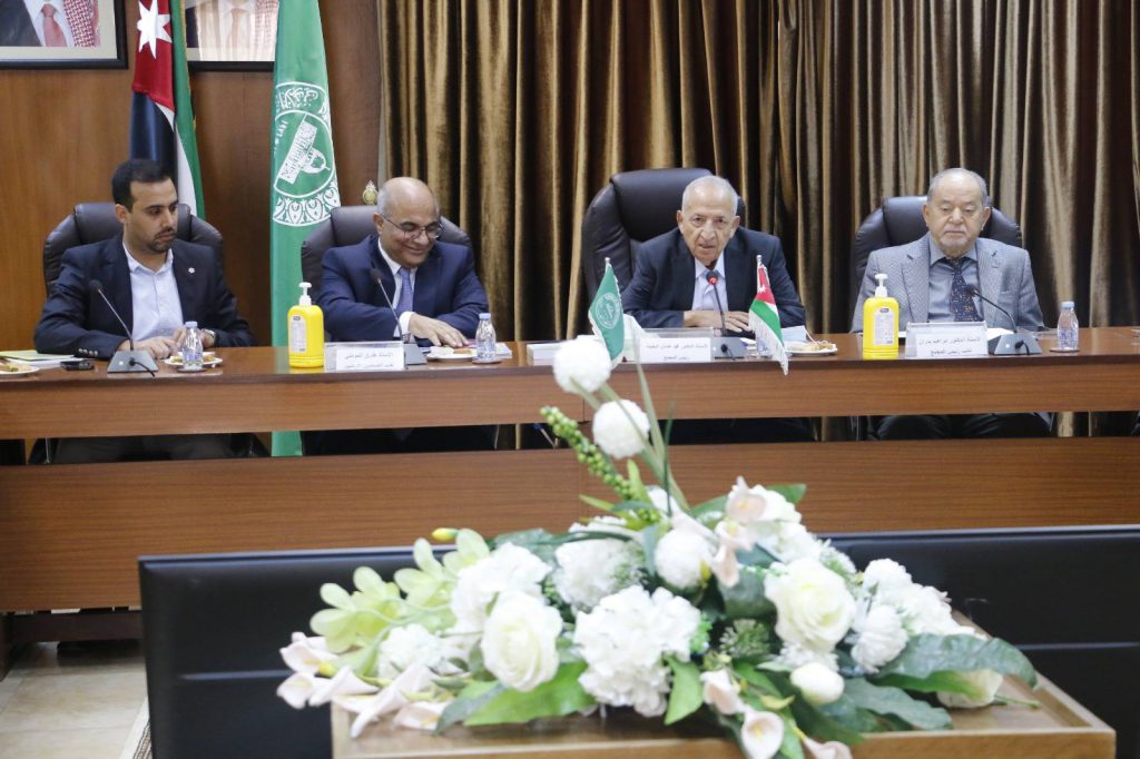 نقيب الصحفيين الأردنيين سعادة الأستاذ طارق المومني يرافقه الناطق الإعلامي باسم النقابة الأستاذ راشد العساف يزوران المجمع ويلتقيان الأستاذ الدكتور محمد عدنان البخيت رئيس المجمع بحضور مجموعة من الأساتذة الأعضاء، الدكتور إبراهيم بدران نائب الرئيس، والدكتور سمير استيتية، والدكتور محمد السعودي، ومديري المديريات في المجمع وعدد من الموظفين، وقد تم التباحث في بعض القضايا اللغوية والتأكيد على أهمية تفعيل مواد قانون الحماية وتطبيق امتحان الكفاية لجميع الفئات المعنية، واستخدام اللغة العربية السليمة في كل ما يكتب وينشر ويبث، خاصة ما يقدّم في الإعلام المرئي والمسموع والمكتوب.
