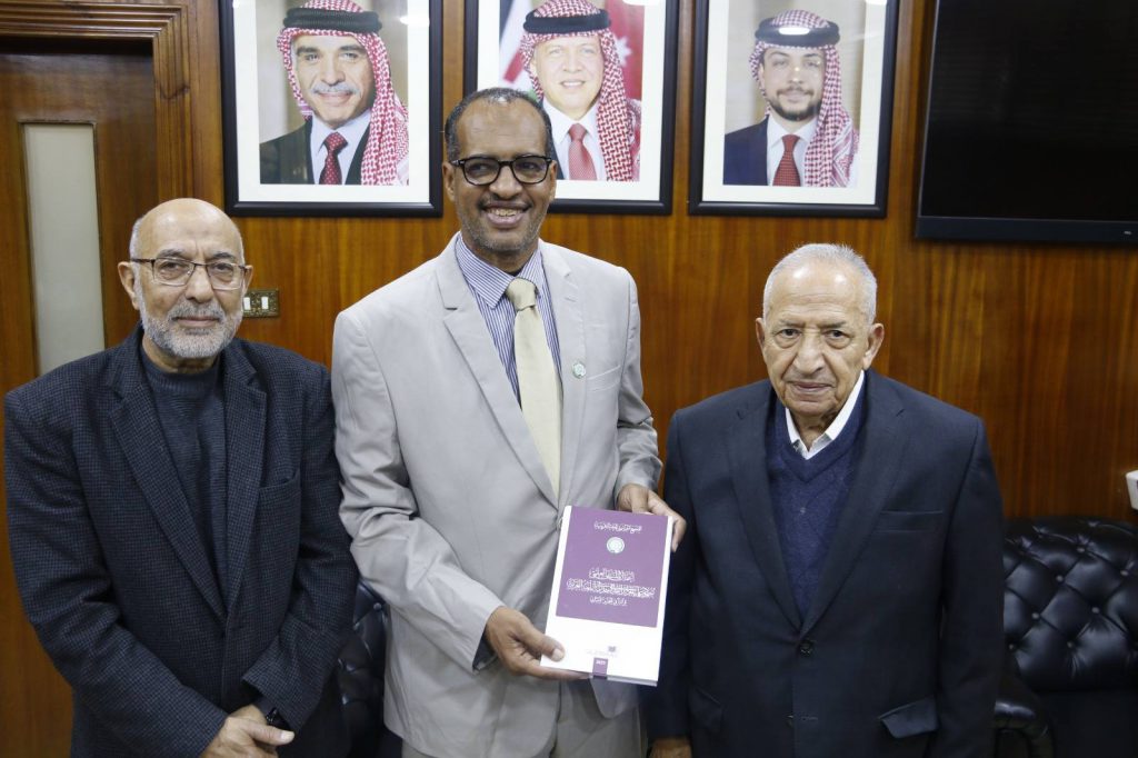 زار الأستاذ الدكتور عبدالله كروم من جامعة أدرار في الجزائر، برفقة الأستاذ إبراهيم باجس من الأردن، المجمع اليوم، والتقيا بالأستاذ الدكتور محمد عدنان البخيت، رئيس المجمع.