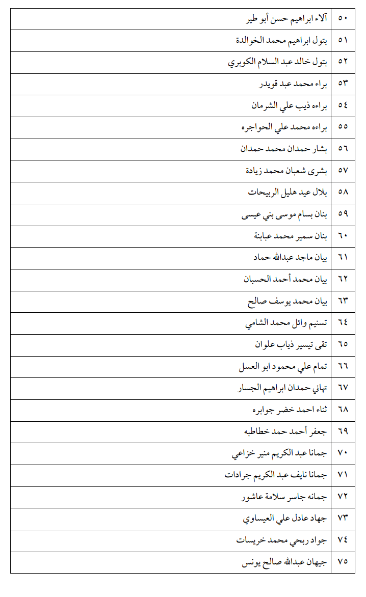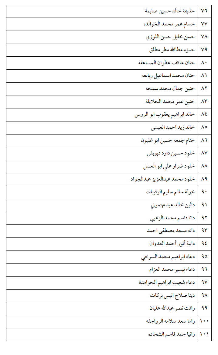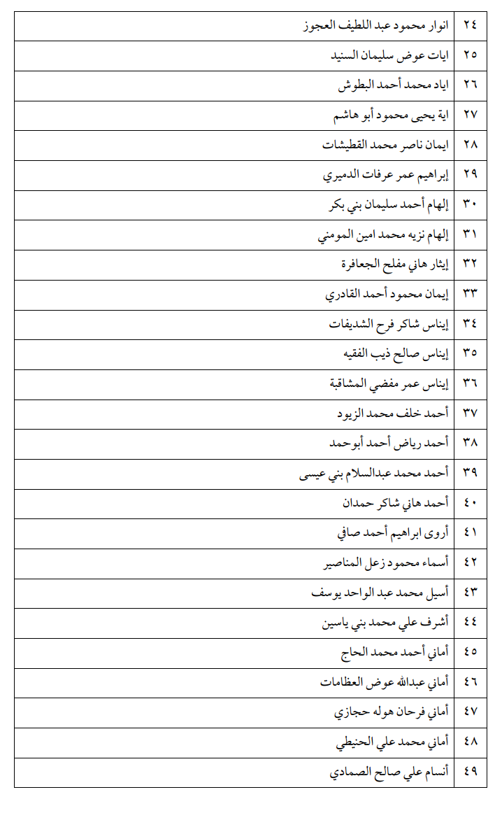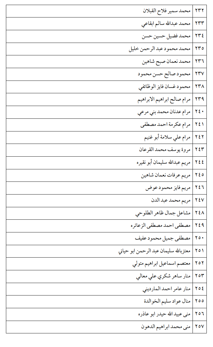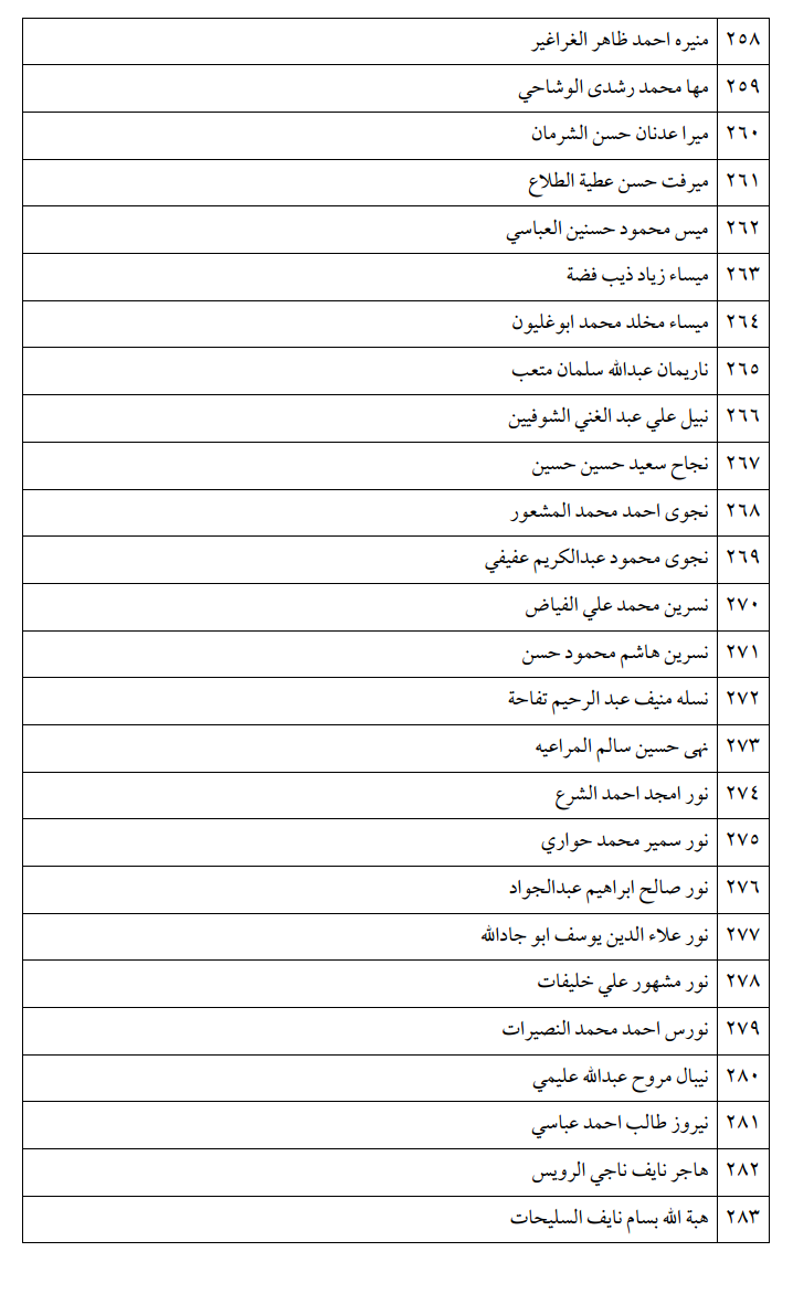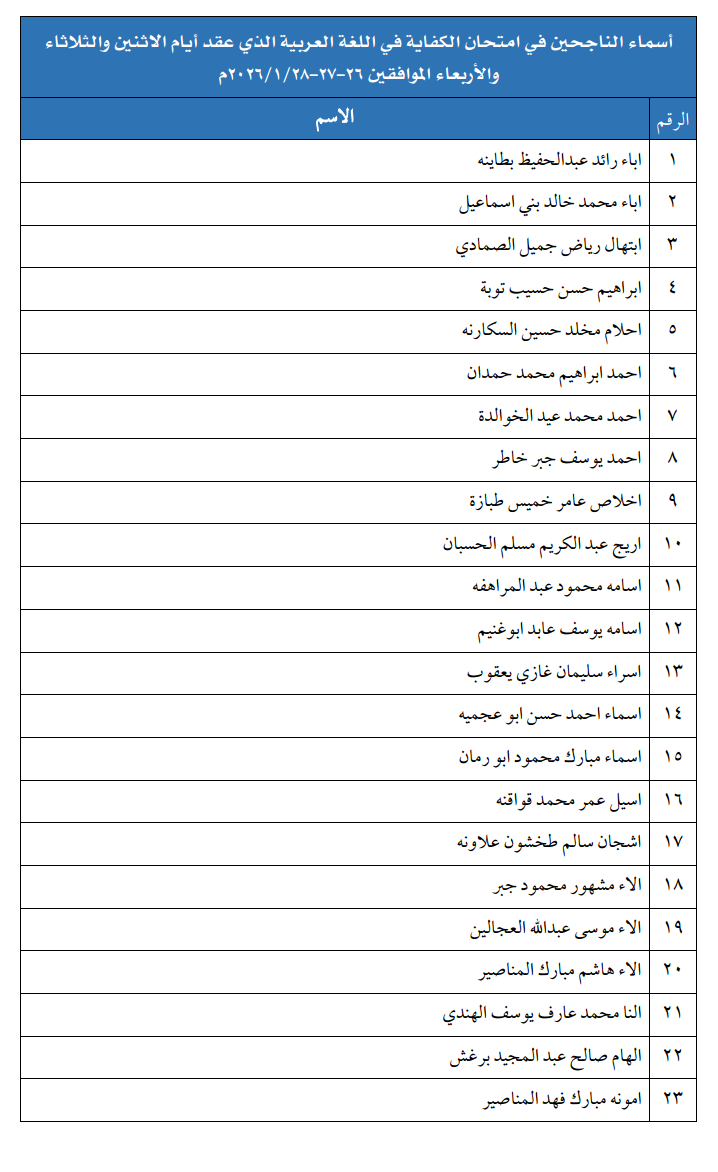 أسماء الناجحين في امتحان الكفاية في اللغة العربية الذي عقد أيام الاثنين والثلاثاء والأربعاء الموافقين ٢٦-٢٧-٢٨/ ١/ ٢٠٢٦م